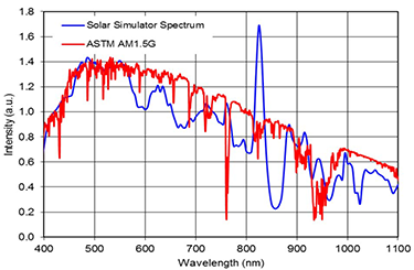 Solar simulator spectrum compared with ASTM AM1.5G solar spectrum