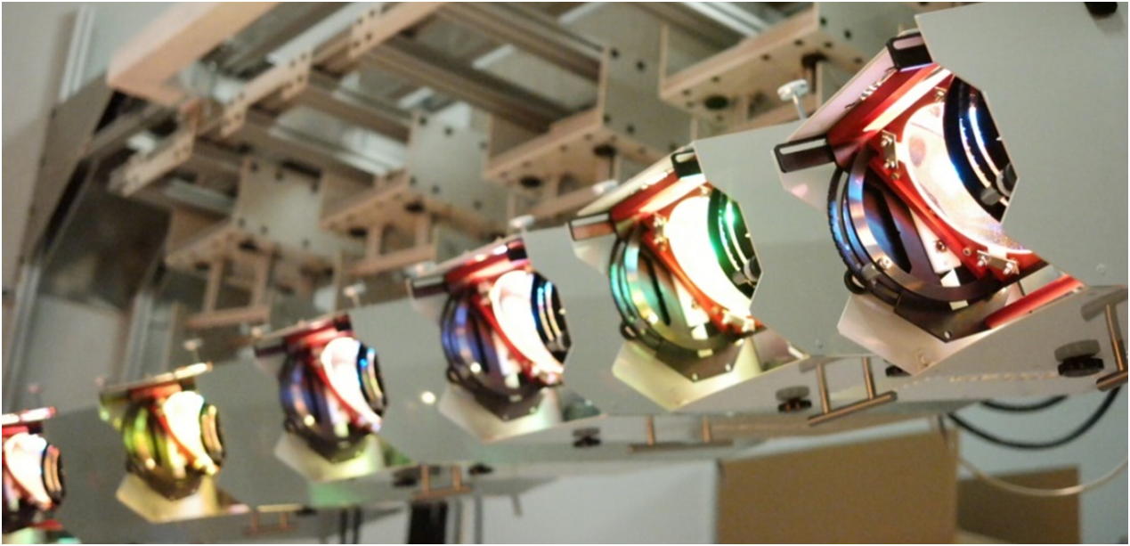 我們使用了8個2kW的QTH燈提供了1.5 x 1.5m2的輻照面積。輻照強度從1個太陽到0.1個太陽可調(diào)??蛻粢髮⒐庾V限制在紅外波長范圍內(nèi)。